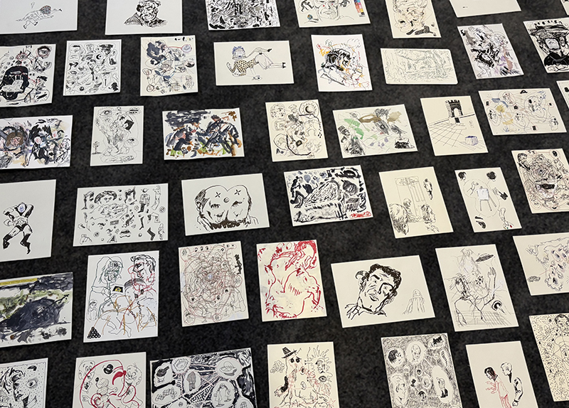 This solo exhibition marks the beginning of a new chapter for the artist as he returns to the city where his practice first took shape. After earning both his BFA and MFA from the University of Houston, DePrez spent seven years living and working in New York while exhibiting internationally. This is his first show in Houston since 2017. Night Worker: Works on Paper 2018–2025 is an intimate exploration of nocturnal studio practices, cultural debris, and drawing’s evolving role in a multidisciplinary practice. Drawing has long served as the structural backbone of Jeremy’s work, especially during periods of transition or instability. Unencumbered by the logistical demands of painting, drawing is a flexible and immediate space for experimentation. The works in this exhibition reflect this freedom: created mostly at night, they map a shifting psychological terrain, informed as much by media saturation and mythic fragments of American culture, as by internal states of restlessness, observation, and critique. “Drawing has always kept my practice alive during moments when painting felt logistically stuck or temporarily unavailable,” the artist explains. “It’s the undercurrent, and the most essential part of what I do.” Fragments of mid-century comic books—especially from the Golden and Silver Ages—surface frequently in the drawings. These references are not nostalgic but diagnostic, pointing to a generation raised in the long, flickering afterglow of mass cultural mythologies. The artist sees this material not as heroic, but as hallucinatory: escapist media engineered to simplify complexity, now drifting into a cycle of manufactured meaning and quiet collapse. This exhibition features a body of drawings made over the past seven years, alongside three paintings that emerge directly from the artist’s drawing practice. While the drawings are not conceived as studies, they inevitably inform the paintings—functioning more as 'conceptual models' than preparatory works. The paintings are not intended as definitive 'end points,' but rather as containers for fleeting visual experiences, preserving the immediacy of drawing while bearing the historical and material weight of painting. For the artist, painting is simply an object—or a vessel—that holds an experience, a premise that informed the title Reality’s Coffin for his 2024 exhibition at Post Times. Together, the drawings and paintings in Night Worker form a visual field of fragments—cultural, emotional, and psychological. They point to a world perceived through layers of myth, memory, repetition, and internal distortion. The exhibition title references the solitary protagonists of Paul Schrader’s films—figures who operate in the margins, obsessively reflecting while the world moves past them. Night Worker captures that spirit, situating the artist’s practice not in the spotlight, but in the charged quiet of the after-hours. At the center of it all is drawing: fast, untethered, obsessive, and essential. |