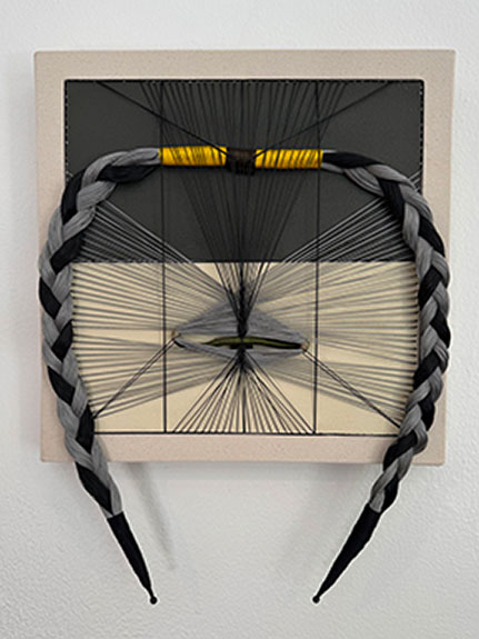 Selven O’Keef Jarmon’s new body of work in Looking for New Guinea engages histories of erased Black American neighborhoods through sculptural garments and mixed-media objects that function as living monuments to cultural memory. Originally conceived for presentation at the Museum of African American History, Nantucket, the exhibition was cancelled following federal funding cuts. It now appears at Front Gallery in a newly realized installation. At its center are Jarmon’s hand-crafted Line Drawing Dresses—intricate, crochet-embellished garments named for historically displaced communities. Functioning as embodied monuments, the dresses translate mapping, memory, and presence into acts of cultural reclamation. Prominently featured alongside the dresses are mixed-media wall works constructed from stainless steel and cotton thread. Extending Jarmon’s investigation of line into tensioned spatial structures, these works translate drawing into relief—mapping histories through accumulation, restraint, and measured force. Their precise geometries and suspended linear systems evoke architectural frameworks, suggesting both containment and endurance within the shaping of collective memory (see attached). Together, the garments and thread constructions render displacement visible—giving physical structure to histories too often omitted from the public record. |